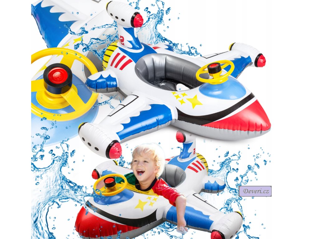 Dětský nafukovací kruh ve tvaru letadla se sedátkem. Bezpečná zábava pro nejmenší do bazénu, k moři i na koupaliště.