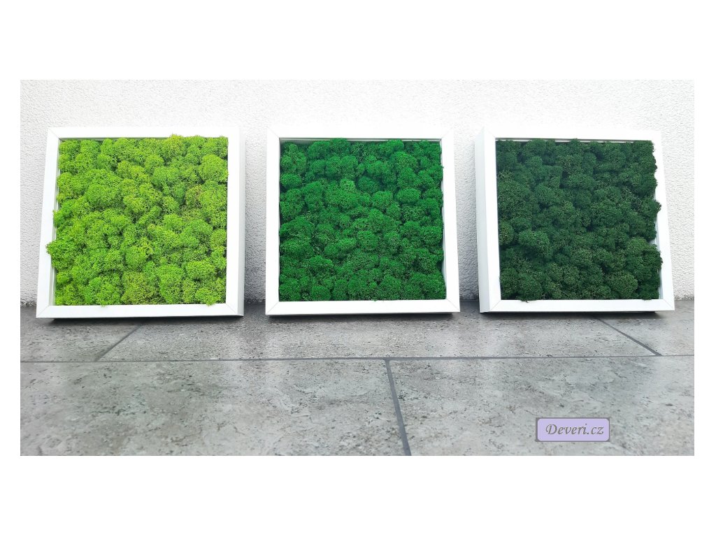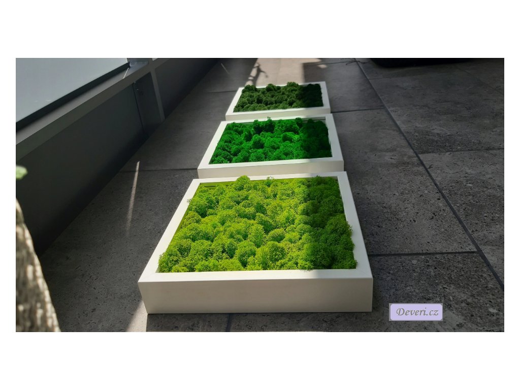 Rám typu box (hluboký) s přírodní a nadčasovou výplní - polštářový mech. Nádherný přírodní design, vhodný do moderních a rustikálních interiérů. Používáme pouze finský sobí mech.