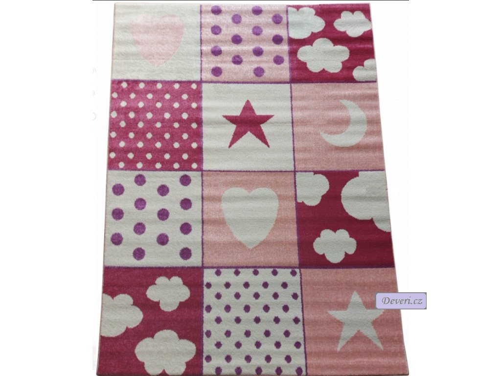Dětský koberec mráčky hvězdy růžový různé rozměry Hotový kusový koberec do dětského pokoje