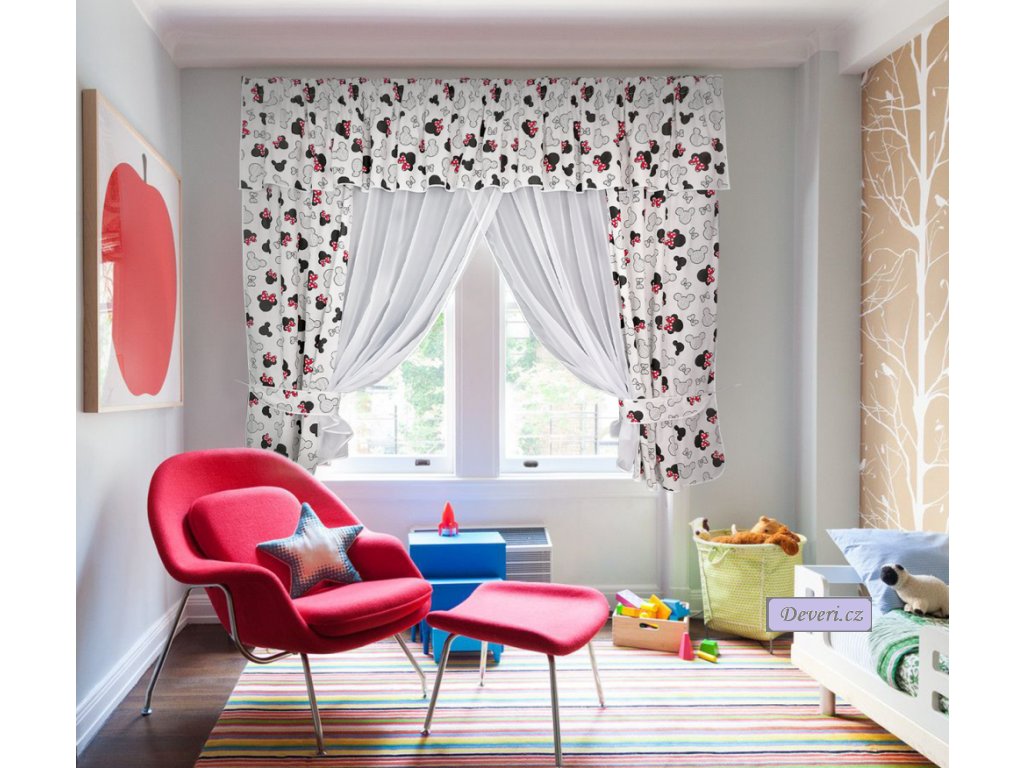 Disney Mickey dětská hotová bavlněná záclona 300x150 cm bílá Čistý voál, můžeme ušít na míru