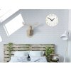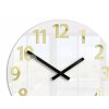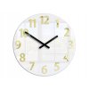 Zajímavé a designové nástěnné hodiny, ve kterých je zdůrazněno bílé akrylové sklo s vysokým leskem a zlatými číslicemi.
