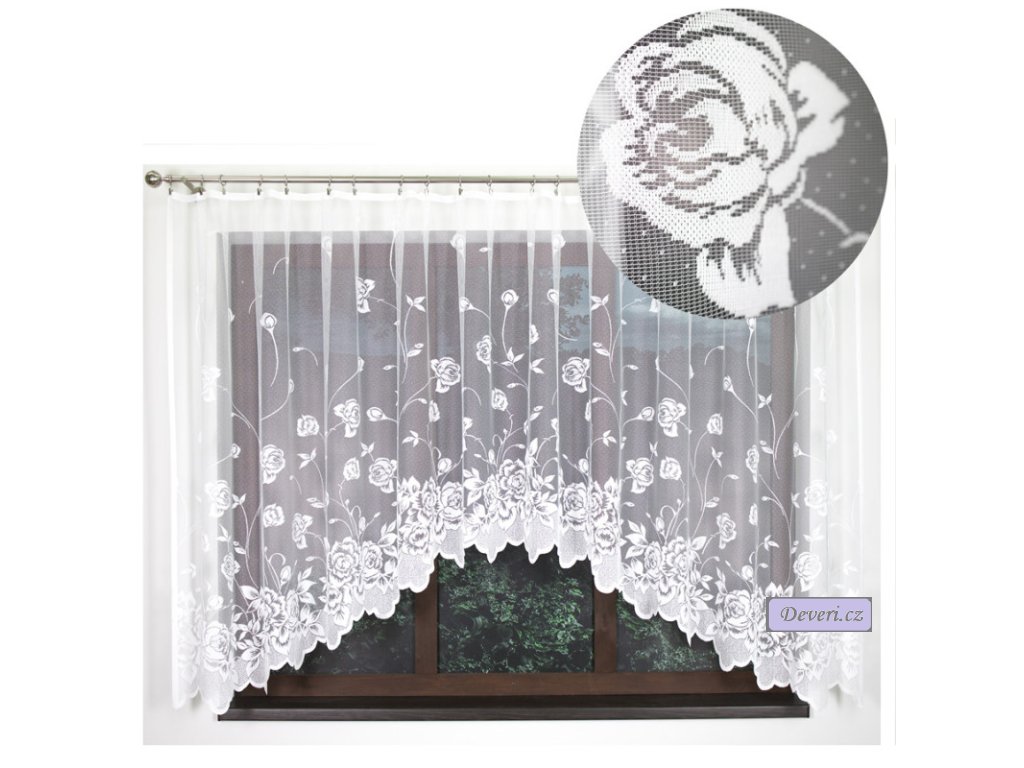 Hotová oblouková žakárová záclona Kamélie 350×150 cm bílá Hotová žakárová záclona, vzor růží