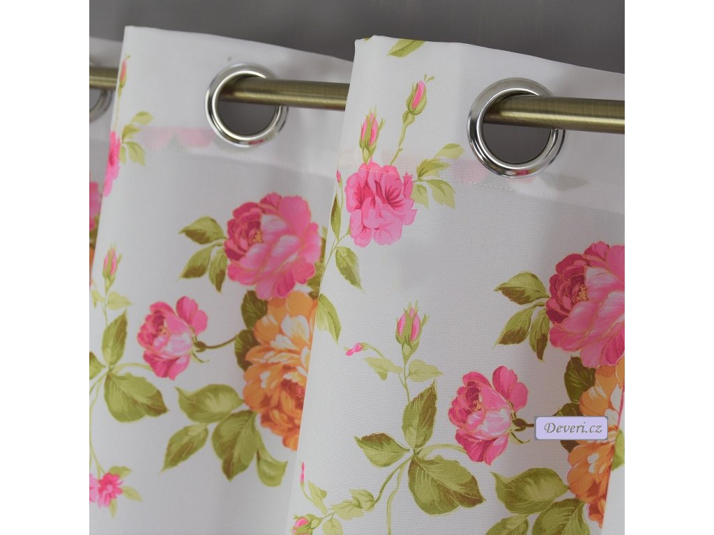 Závěs je vybaven 8 průchodkami pro usnadnění instalace a zajištění volného posuvu závěsu na garnýžové tyči. Boky a spodní část závěsu jsou zakončeny lemem. Motiv barevných květin v tlumených barvách dává látce jemné kouzlo.