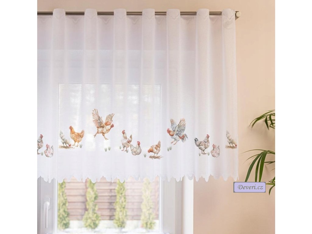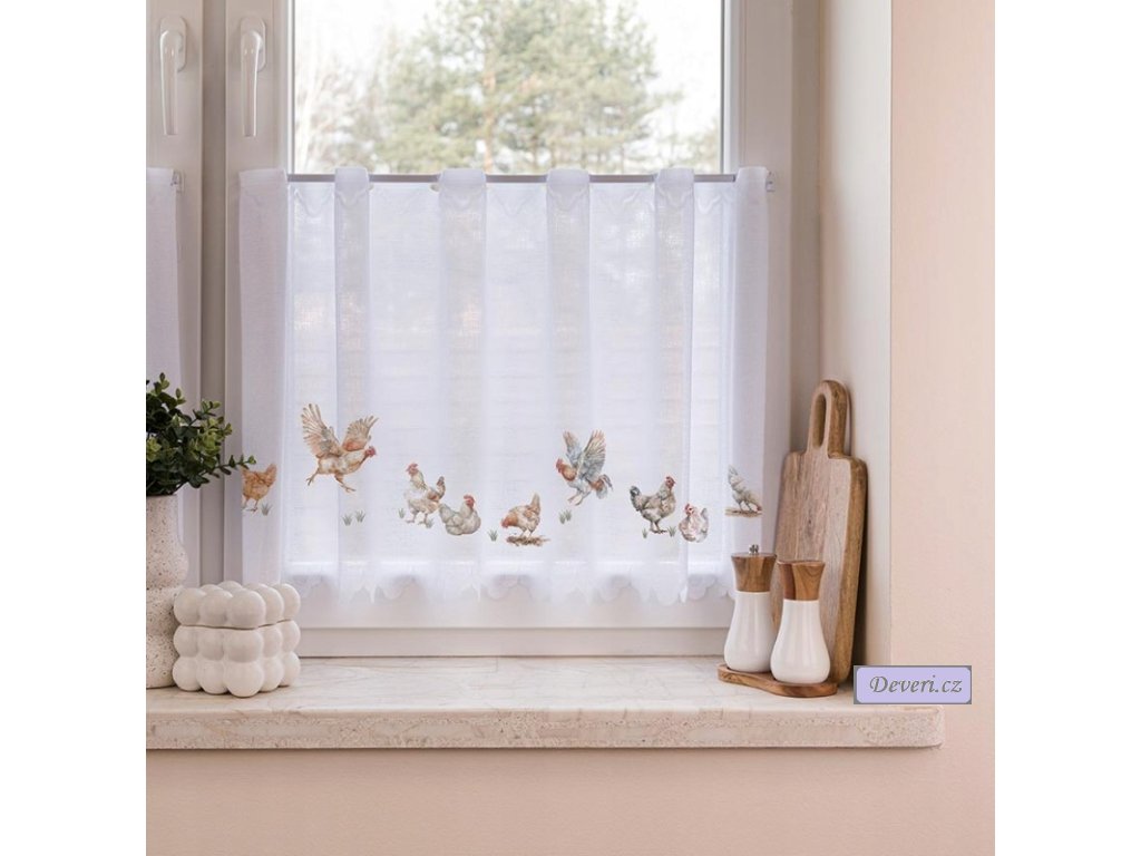 Evelyn žakárová záclona výška 50cm slepice a kohouti bílá | 4 rozměry Hotová záclona, velikonoční vzor