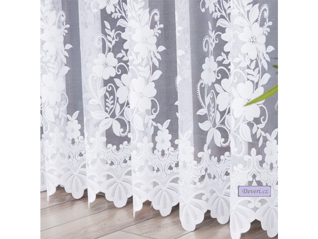 Jessica žakárová záclona bílá, 3 rozměry | metráž Možnost obšití boku, našití řasící pásky.