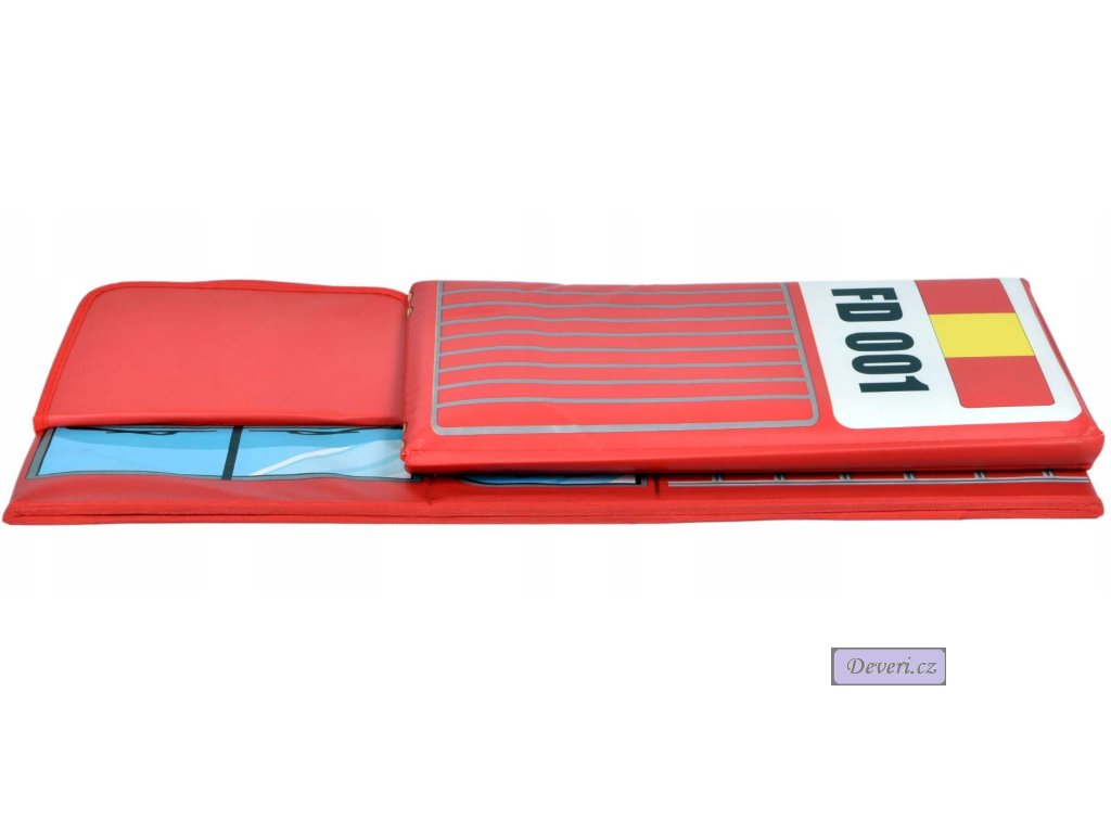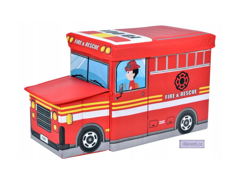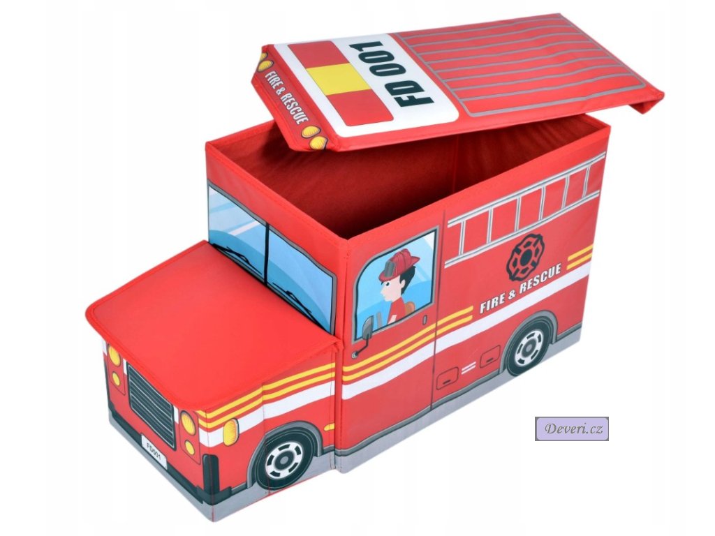 Box puf vak organizér na hračky Hasičské auto 55 x 26,5 x 31 cm červený Praktický box na hračky, sedací vak