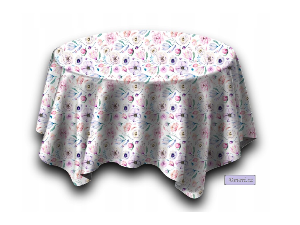 Kulatý ubrus s pivoňkami dodá stolu jemnost a styl. Průměr 140 cm. Praktický, světlý a krásně zpracovaný kousek z dílny Deveri.