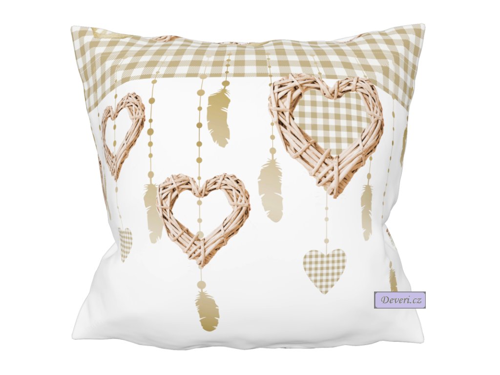 Dekorační povlak na polštář 40x40cm srdce hnědé Srdcový vzor, 40x40cm