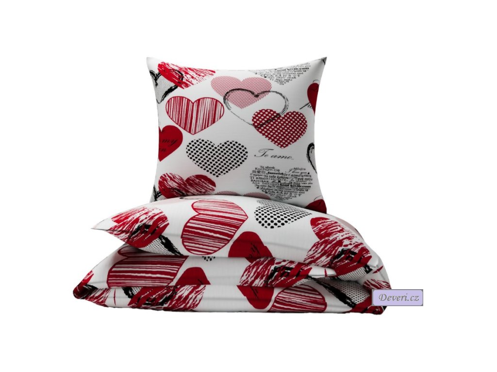 Bavlněné povlečení 140x200cm/70x80cm srdce valentýn bílé Srdcový vzor, rozměr 140x200cm /70x80cm, Valentýn
