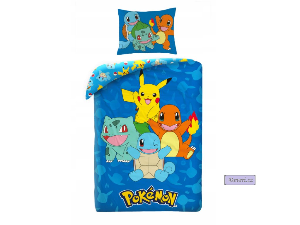 Dětské bavlněné licenční povlečení Pokémon 140×200 cm / 70×90 cm modré Bavlněné povlečení s motivem Pokémonů