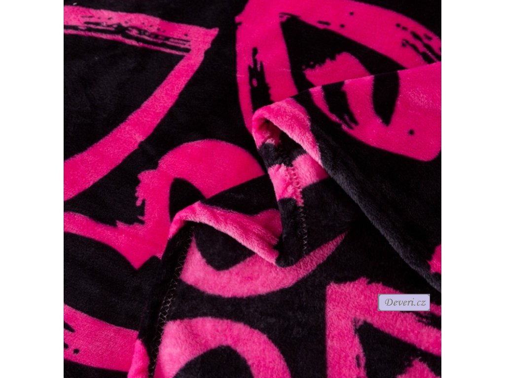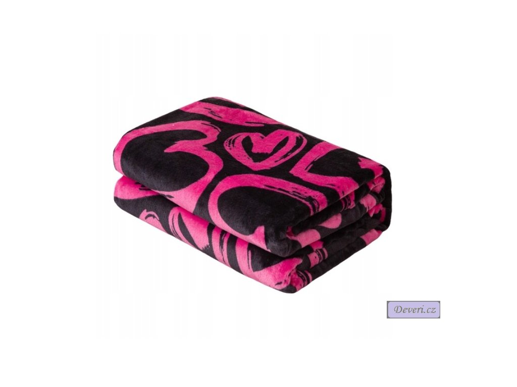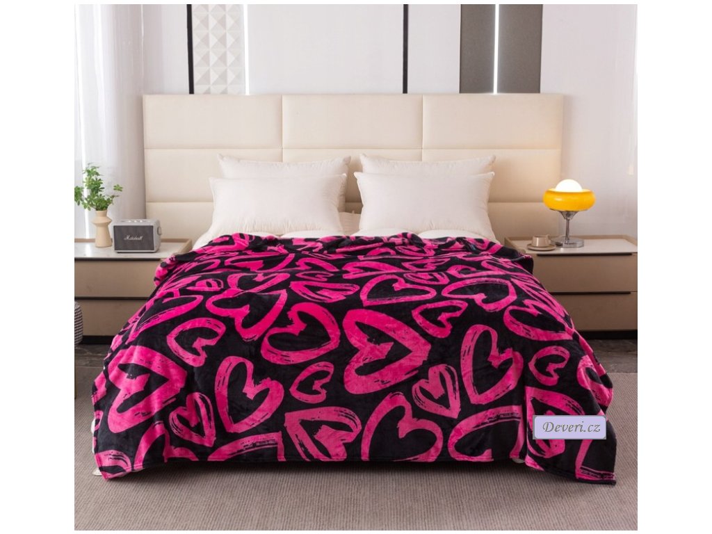 Hebká plyšová deka s jemným vzorem srdíček. Elegantní černý doplněk pro pohodové chvíle doma. Ideální na zachumlání i jako stylový přehoz.