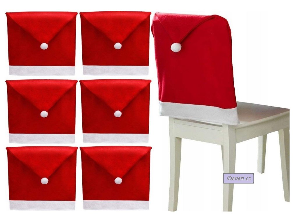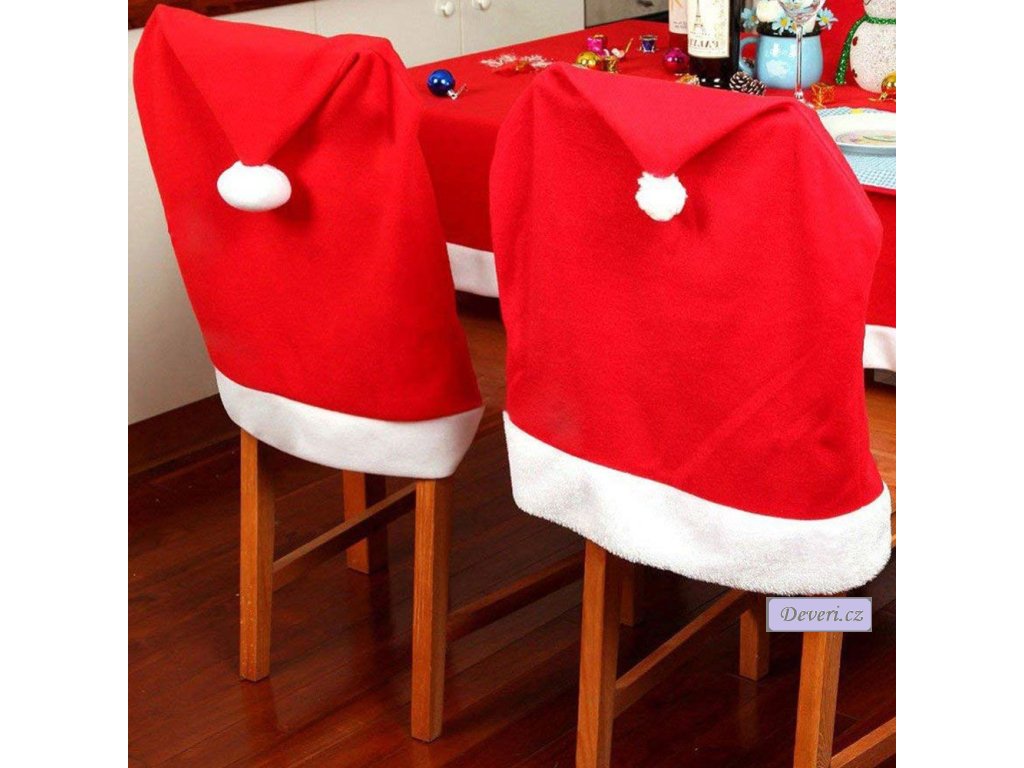 Sváteční potah na židle s motivem vánoční čepice.