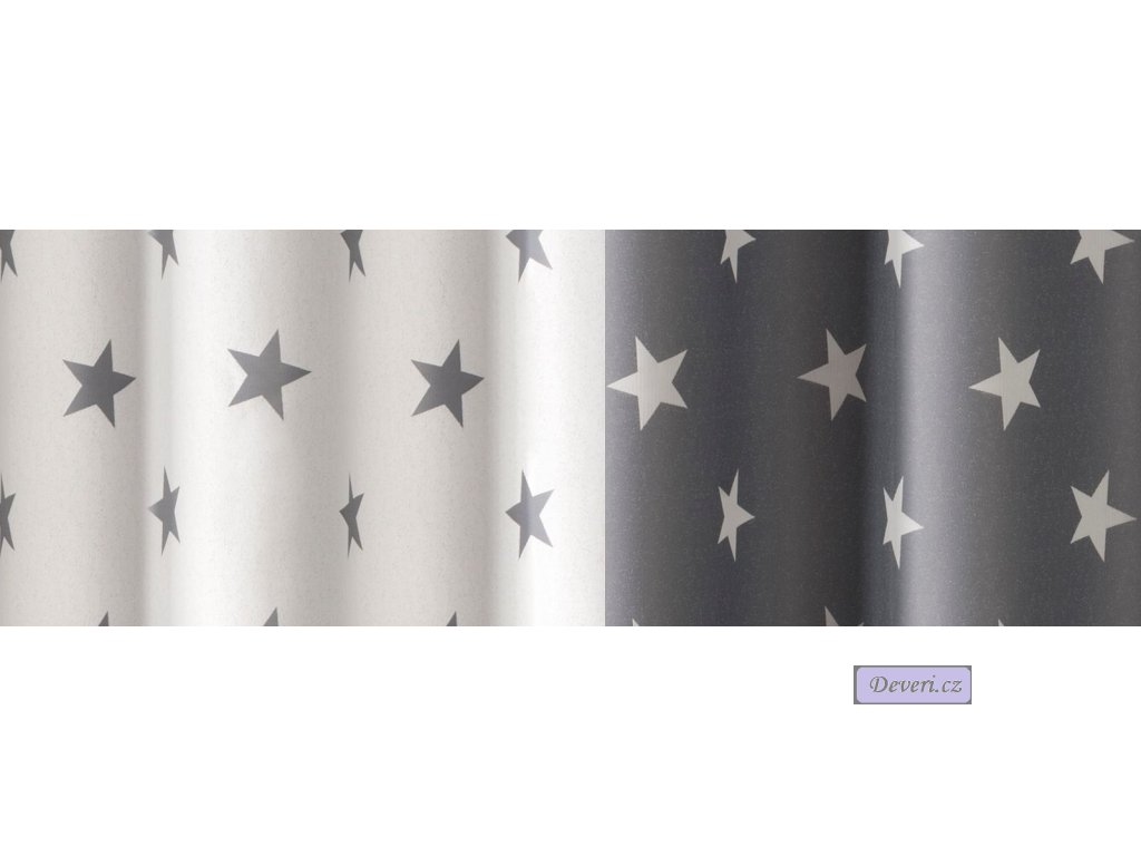 Závěsy jsou oboustranné, tedy z jedné strany bílý podklad a šedé hvězdy a z