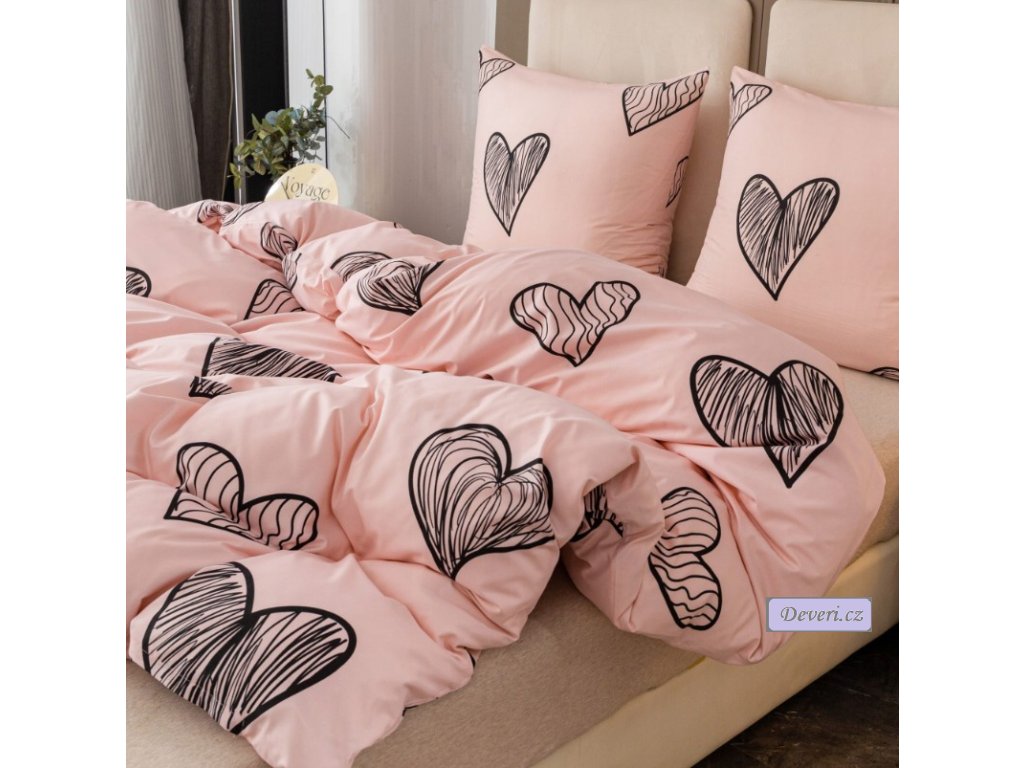 Růžové valentýnské povlečení se srdíčky z jemného mikrovlákna. Měkké, prodyšné a příjemné na dotek. Ideální pro klidný spánek i jako dárek.