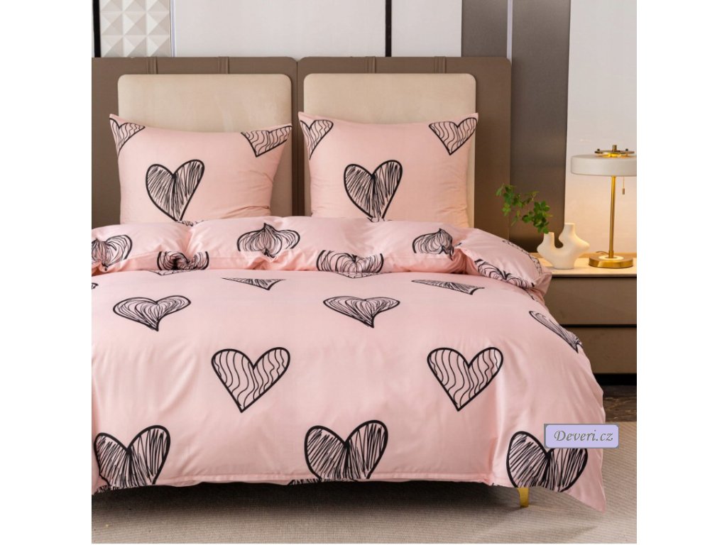 Valentýnské povlečení srdíčka 140x200 cm / 70x80 cm růžové Srdcový vzor, valentýnské povlečení