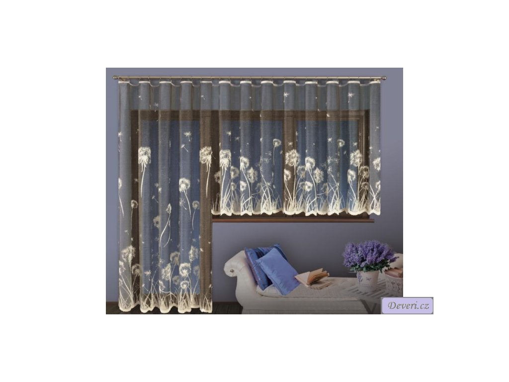 Elegantní a moderní žakárová záclona zdobená motivem pampelišek.